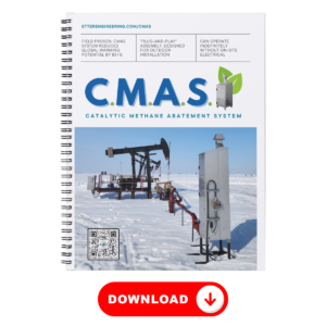 The Catalytic Methane Abatement System (CMAS) by ETTER Engineering (U.S. Patent #10,150,081) utilizes a platinum-based catalyst to convert methane into CO2 and water vapor. These units are designed for outdoor installation, operate indefinitely without on-site electrical power, and are FM-approved for Class I, Division I installations. CMAS is delivered as a complete “Plug & Play” assembly, leading the way in mitigating methane’s impact on our climate.